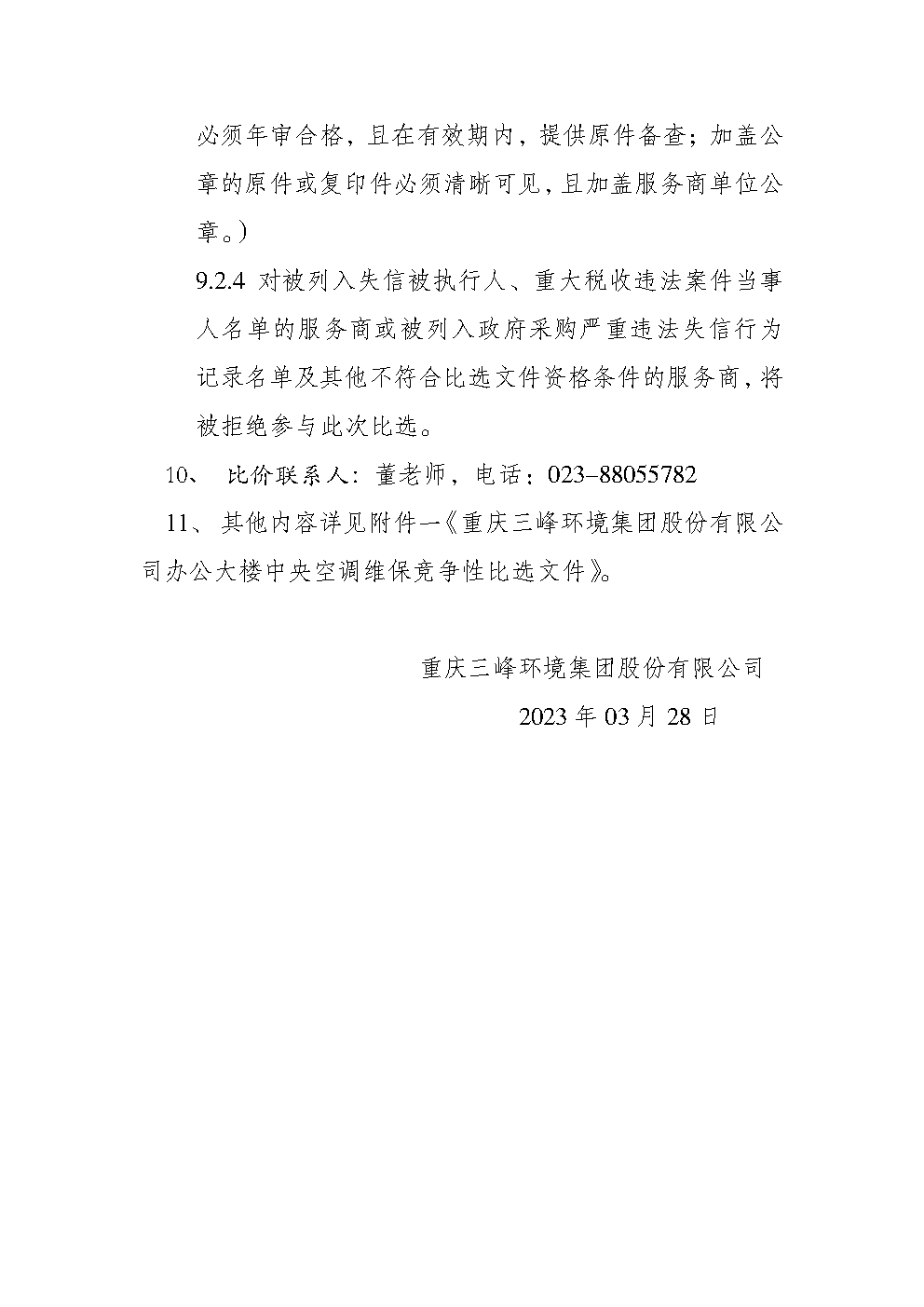 附件一《重慶三峰環(huán)境集團(tuán)股份有限公司辦公大樓中央空調(diào)維保》.doc